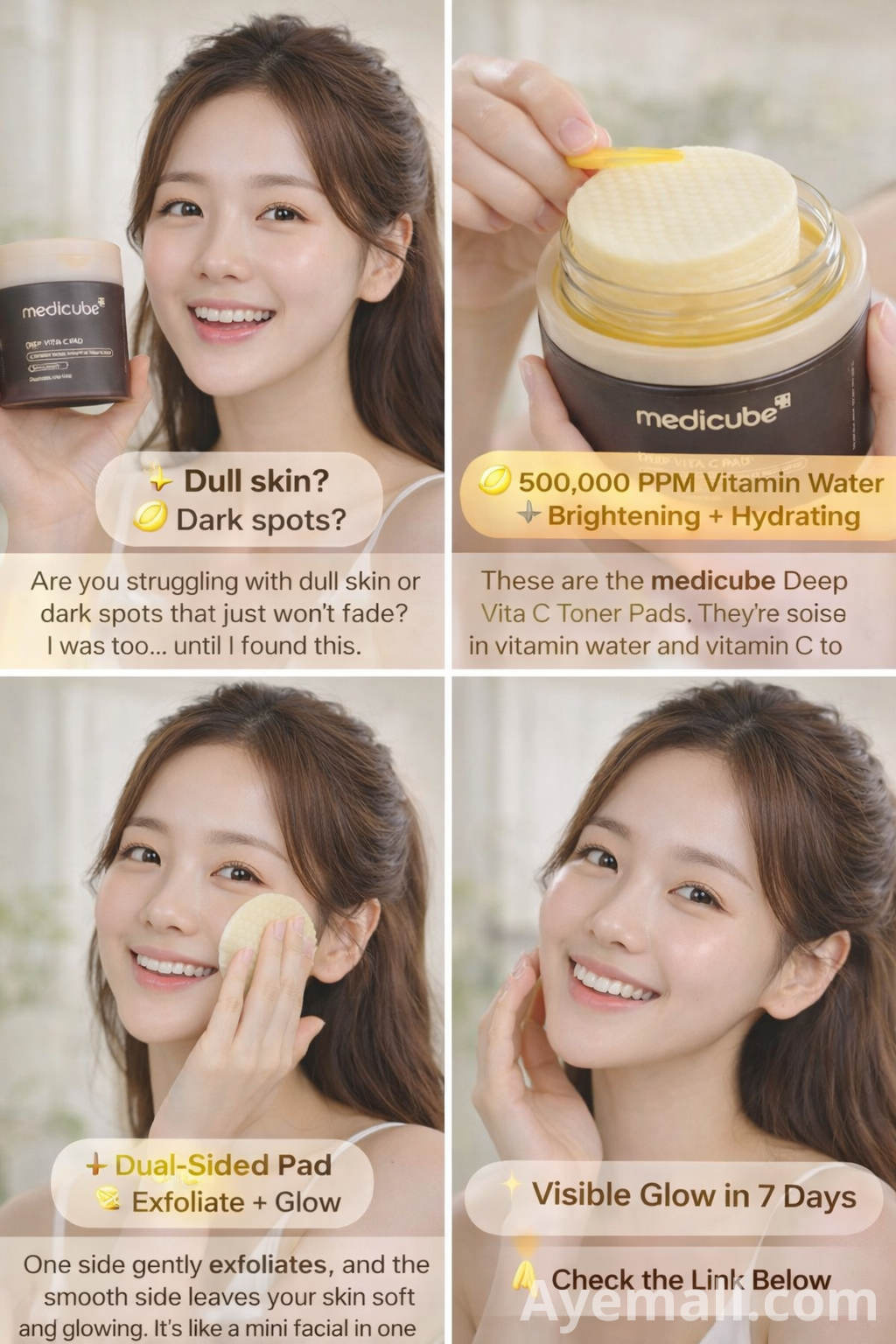 - Medicube Deep Vita C Pad is infused with a bottle of 7-day Dark Spot Ampoule, effectively swiping away visible dark spot…