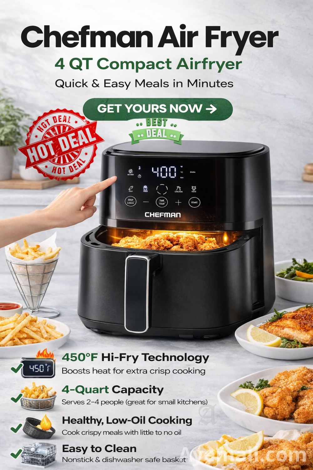 The Chefman Air Fryer – 4 QT Compact Airfryer offers great value. It combines useful features with a fair price.