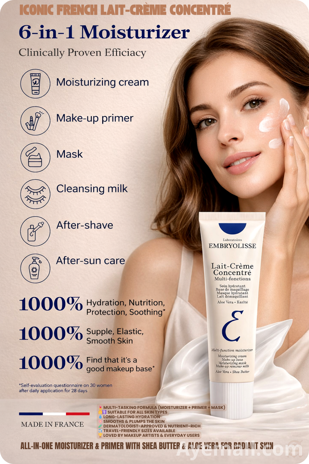 ✨ French Skincare Icon: Known as the ultimate multitasking face cream, Embryolisse Lait-Crème Concentré has been a beauty secret in France for decades. Ideal for every skin type, it’s celebrated by makeup artists worldwide.