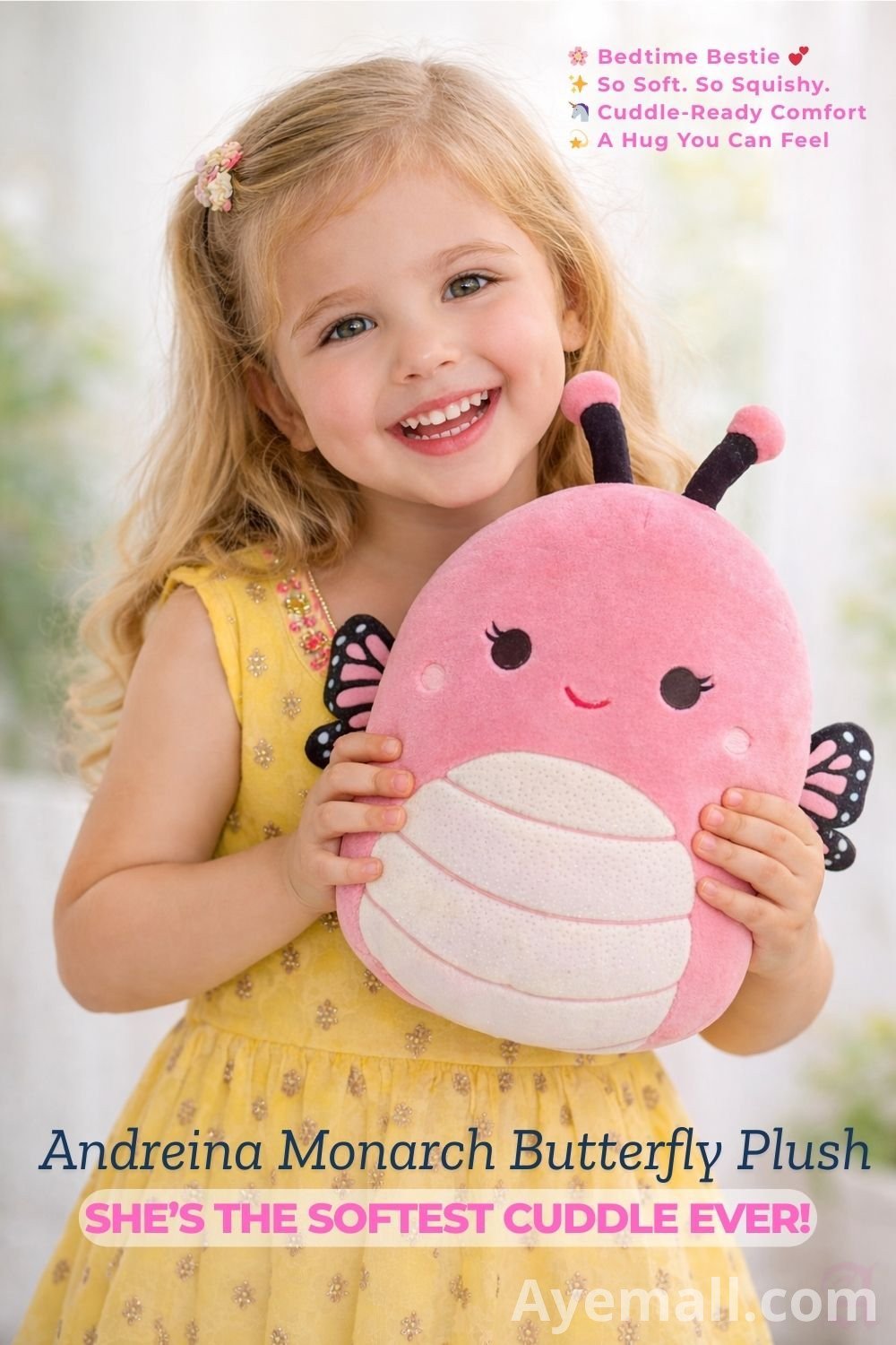 Andreina is a lovable pink monarch butterfly who enjoys peaceful moments in her rooftop garden while sharing calm and happiness everywhere she flutters. Crafted with Squishmallows’ signature ultra-soft Mallow fabric, this 14-inch plush blends cozy comfort, adorable charm, and true collectibility.